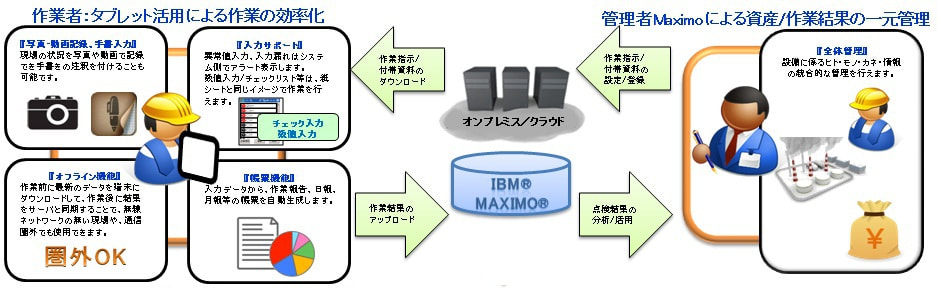 IBM® Maximo® と使いやすい現場用タブレットアプリの連携により、設備管理コストの低減とO&M業務を強力にサポート出来るソリューションとなります。
