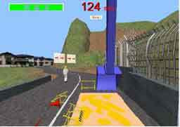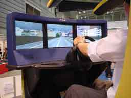 ハンドルやペダルを操作し、2Km四方の市街地を走行し、前方視界はもちろん、ルームミラーやサイドミラーで後方も確認しながら、安全運転を体感するシステムです。