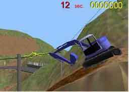 レバーやペダルを操作し、ショベルによる堀削・土砂の積み込み・自車両のダンプカーへの搭載、などの実作業や、突発的な事故の危険予知訓練をします。